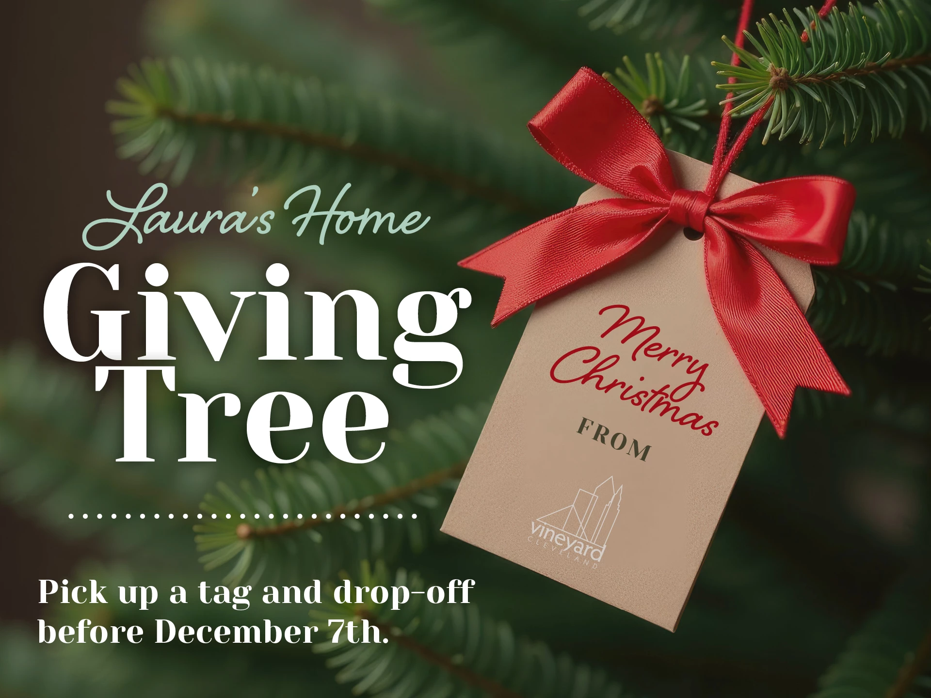 Grab a tag off the tree Sunday morning and purchase a gift to help a family from Laura's Home this Christmas season! All gifts are due by December 7th.